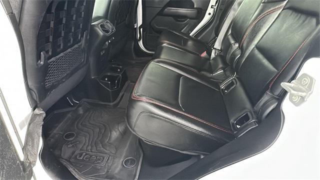 120v Ac Power Outlet : 1 4 Door 4-Wheel Disc Brakes 4-wheel ABS Brakes 4.10 Rear Axle Ratio 7 USB ports 9 Speakers 97 MPH Vehicle Max Speed Calibration ABS Brakes ABS and Driveline Traction Control AM/FM Radio: Siriusxm Active front stabilizer bar with driver control Air Conditioning Alloy Wheels Ambient lighting Anti-theft alarm system Apple CarPlay/Android Auto mirroring Apple Carplay/Android Auto Audio System Premium Brand Speakers: Alpine Audio controls on steering wheel Audio system memory card slot Auto-Dimming Rear-View Mirror Automatic Temperature Control Automatic front air conditioning Automatic locking hubs Auxilliary engine cooler Black 3-Piece Hard Top Black bumpers Body-color grille w/colored accents Brake Assist Braking Assist Bucket front seats Center Console: Full with locking storage Clock: In-radio display Coil front spring Coil rear spring Compass Convertible occupant rollover protection Corning Gorilla Glass Cruise control Cruise controls on steering wheel Cupholders: Front and rear Curb weight: 5,050 lbs. Daytime running lights Delay-Off Headlights Diameter of tires: 17.0" Digital Audio Input Door pockets: Driver, passenger and rear Door reinforcement: Side-impact door beam Driver Door Bin Driver Vanity Mirror Driver airbag Dual Front Impact Airbags Dual Front Side Impact Airbags Dual front air conditioning zones Dual illuminated vanity mirrors Dusk sensing headlights Electrochromatic rearview mirror Electronic Stability Control Emergency Communication System: Siriusxm Guardian Engine immobilizer External temperature display Fixed antenna Floor mats: Carpet front and rear Fold forward seatback rear seats Freedom Panel Storage Bag Front Anti-Roll Bar Front Beverage Holders Front Bucket Seats Front Center Armrest W/Storage Front Dual Zone A/C Front Fog Lights Front Head Room: 42.8" Front Hip Room: 53.9" Front Leg Room: 41.2" Front License Plate Bracket Front Reading Lights Front Shoulder Room: 55.7" Front Ventilated disc brakes Front and rear reading lights Front and rear suspension stabilizer bars Front fog/driving lights Fuel Capacity: 22.0 gal. Fuel Consumption: City: 16 mpg Fuel Consumption: Highway: 23 mpg Fuel Type: Regular unleaded Fully Automatic Headlights Garage door transmitter Gross vehicle weight: 6,250 lbs. Halogen aero-composite headlights Headlights off auto delay Heated Door Mirrors Heated driver mirror Heated passenger mirror Illuminated Entry Instrumentation: Low fuel level Integrated Navigation System : with voice activation Integrated Roll-Over Protection Interior air filtration Keyless ignition w/ push button start & keyless door entry Leading link front suspension Leather Steering Wheel Leather steering wheel trim Left rear passenger door type: Conventional Low Tire Pressure Warning Manual child safety locks Manual convertible roof Manufacturer's 0-60mph acceleration time (seconds): 7.2 s Metal-look center console trim Metal-look dash trim Metal-look door trim Mopar All-Weather Slush Mats Mopar Hardtop Headliner Navigation System Non-independent front suspension classification Occupant Sensing Airbag Outside Temperature Display Overall Length: 218.0" Overall Width: 73.8" Overall height: 76.1" Panic Alarm Parkview Rear Back-Up Camera Passenger Airbag Passenger Door Bin Passenger Vanity Mirror Performance Suspension Polished w/painted accents aluminum rims Power Door Mirrors Power remote driver mirror adjustment Power remote passenger mirror adjustment Power steering Power windows Premium Cloth Low-Back Bucket Seats Premium cloth seat upholstery Privacy glass: Deep Quick Order Package 24r Radio Data System Radio: Uconnect 4c Nav W/8.4 Display Rear Anti-Roll Bar Rear Head Room : 42.8 " Rear Hip Room: 55.9" Rear Leg Room: 38.3" Rear Reading Lights Rear Shoulder Room: 55.7" Rear Sliding Window Rear Stabilizer Bar: Regular Rear View Camera Rear Window Defroster Rear center seatbelt: 3-point belt Rear door type: Tailgate Remote Keyless Entry Remote power door locks Right rear passenger door type: Conventional Rigid axle rear suspension Seatback storage: 2 Seatbelt pretensioners: Front Security System Side airbag SiriusXM AM/FM/HD/Satellite Radio SiriusXM Guardian SiriusXM Satellite Radio SiriusXM Satellite Radio(TM) Spare Tire Mount Location: Underbody w/crankdown Speed Control Speed Sensitive Audio Volume Control Split Folding Rear Seat Split rear bench Stability controll with anti-roll Steel spare wheel rim Steering Wheel Mounted Audio Controls Suspension class: Off-road Tachometer Telescoping Steering Wheel Tilt Steering Wheel Tilt and telescopic steering wheel Tire Pressure Monitoring System: Tire specific Tires: Load Rating: C Tires: Prefix: LT Tires: Profile: 70 Tires: Speed Rating: S Tires: Width: 285 mm Total Number of Speakers: 9 Traction Control Trailer hitch Trailing arm rear suspension Transmission hill holder Trip computer Two 12V DC power outlets Type of tires: AT UConnect w/Bluetooth wireless phone connectivity Universal remote transmitter Urethane shift knob trim Variable intermittent front wipers Variably Intermittent Wipers Vehicle Emissions: ULEV II Video Monitor Location: Front Voltmeter Wheel Diameter: 17 Wheel Width: 7.5 Wheelbase : 137.3 " Wheels: 17 X 7.5 Granite Crystal Aluminum